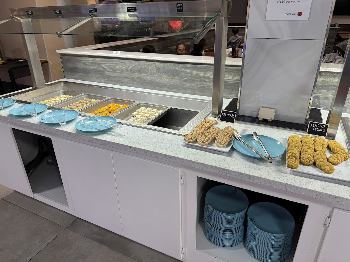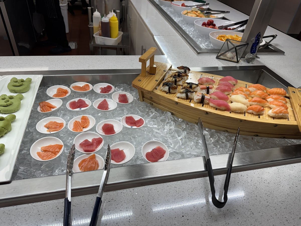 Many selections including Chinese dim sum, Hibachi, Japanese sushi & sashimi, BBQ pork, Vietnamese Pho, beef noodles, good selections of desserts。 Restaurant was just opened for a few months and looked very clean. Price was right for the food selection and quality!